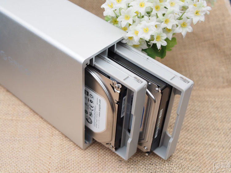 硬盘盒采用抽取模式,此次试用的是双盘位的。