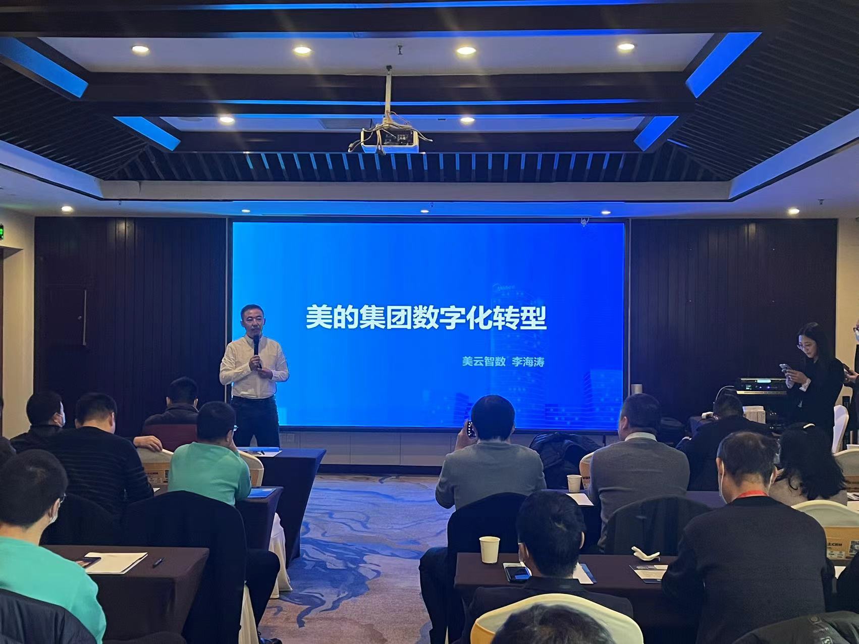 接下来是美的集团美云智数华中区域总监的李海涛带来分享:美的集团数字化转型实践分享。广东美云智数科技有限公司,源自世界500强企业美的集团,致力于推动企业数字化转型,通过智能制造、物联网、大数据、云计算、移动互联网等技术,为企业提供全价值链云服务,帮助企业实现在员工端、制造端、产品端、营销端和消费者端的全面拉通,并借助流程拉通和数据流转,提炼出符合企业不同场景的最佳解决方案,是企业数字化转型的首选服务提供商。