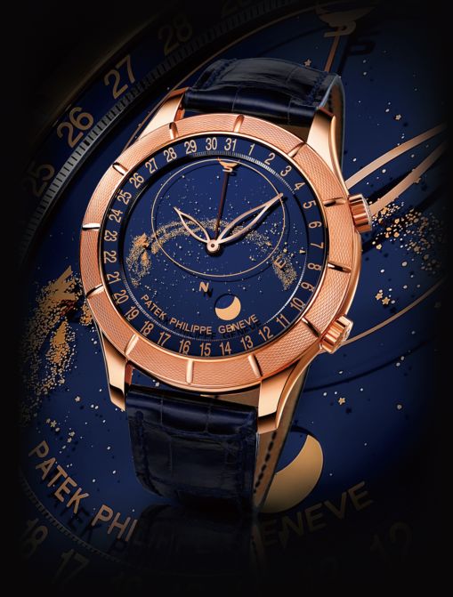 2009 拍卖价格 53.5万欧元 拍卖会总成交金额 220万欧元 占总成交金额:24% 搭配玫瑰金表壳,具有日期显示窗口以及独一无二的Guilloché雕饰纹图案,显示北半球夜空的大幅苍穹图沿表盘逆时针旋转,展现繁星相对于天狼星中天的移动。 |
