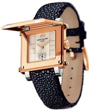 2005 拍卖价格 12万欧元 拍卖会总成交金额 190万欧元 占总成交金额:6% 方形表壳装饰珍稀宝石,呈现复苏与希望的主题。 |