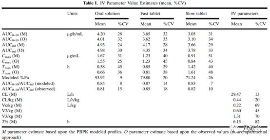 本研究使用环丙沙星的物理化学性质数据,静脉、口服溶液剂、口服快速和慢速释放片剂的PK数据,研究环丙沙星口服制剂的体内行为。由于药物摄取和外排转运体和药物代谢途径等变量未纳入该模型,因此当前的机制模型还不能预测不同类型患者(转运体和代谢酶表达不同)体内的药物暴露。