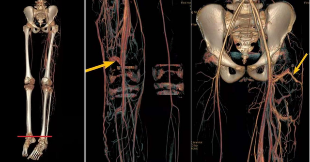 李思副主任医生(外周血管介入医生)在了解到这个情况后,对小杨的双腿进行了细致的体查,发现小杨的双腿除了长短粗细不一,双侧的皮温有明显差异,患侧肢体上有明显的色素沉着。