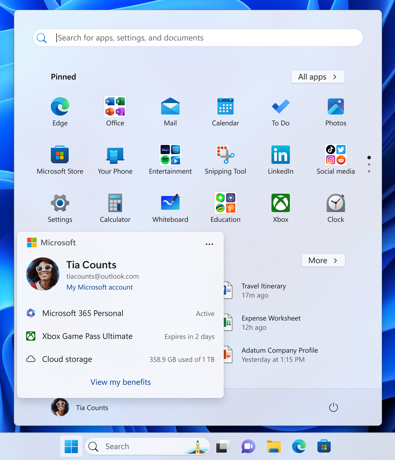 微软在新版本中微调了开始菜单,账户菜单中新增了一个指向用户 Microsoft 365 订阅权益的链接,方便用户快速访问。