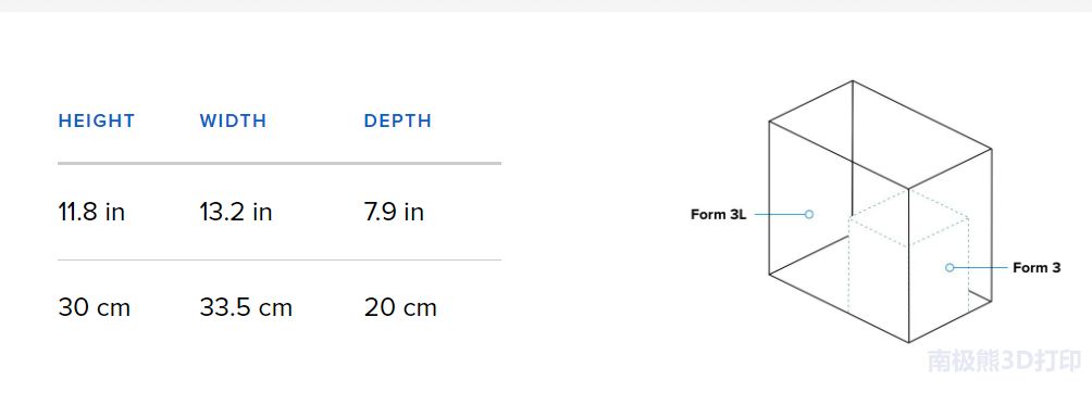 Form 3L的打印体积是Form 3的五倍,由两个Formlabs光学激光单元提供动力,可提供两倍的激光功率。
