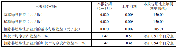 今年上半年,太平洋基本每股收益为0.020元/股,同比增长150.00%;加权平均净资产收益率为1.42%,同比增加0.91个百分点。
