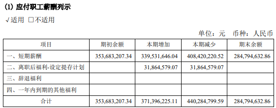今年上半年,太平洋支付给职工及为职工支付的现金为4.41亿元。截至今年6月末,公司应付职工薪酬为2.85亿元,期初余额为3.54亿元。