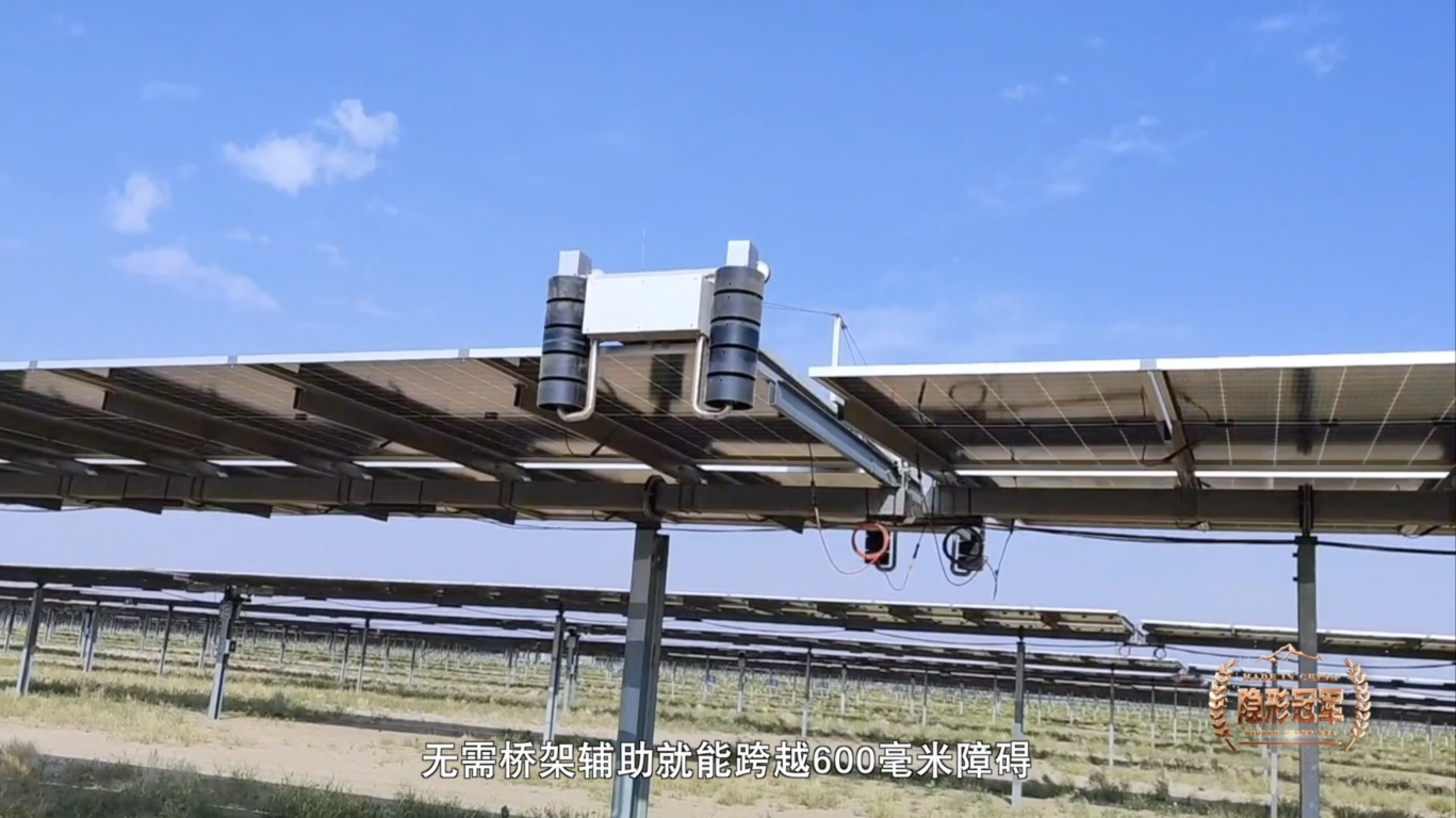 中东成为其首战之地。彼时,中东最大的光伏新能源开发商ACWAPower(沙特国际电力和水务公司)正在为跟踪支架电站寻找清洁方案。这类电站的光伏板像“钢铁向日葵”般跟随太阳转动,支架转动范围可达90°正负,传统固定支架设备完全无法适配,对清洁机器人的爬坡能力、通过性和运动稳定性提出了新的要求。