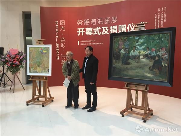 2018年1月18日下午,“阳光·色彩·诗意—梁器奇油画展”在广州美术学院美术馆开幕,展览共展出梁器奇55幅油画作品,较为全面地呈现了他从早期到近期的艺术面貌。同时还举行了梁器奇作品捐赠仪式,各个时期的代表性油画作品《田头会》(1959年)、《美丽的渔港》(1963年)、《小鸟枝头唱海棠》(1999年)、《无风的时刻》(2010年)赠予广州美术学院美术馆收藏。