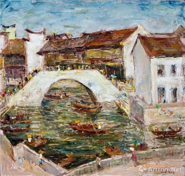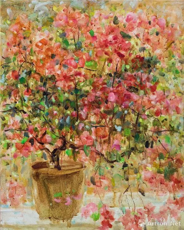 在此多重因素以及时代境遇的演变当中,梁器奇先生却一如既往地坚持遵从内心表达、随性而为的独特艺术道路。他的作品重视表现外光和色彩变化,讲究笔触的灵动,而不拘泥于形似,受到西方现代派的影响,却又融入了中国特有的审美体验。在主题上,他较少创作那些贴合时势需要的主流创作,而更多描绘的是生活当中的普通小景,如村镇、水乡、海滩、渔港、瓶花、窗台盆栽等。即便是带有社会性主题的作品也无不采用他那绚烂的色彩和洒脱的笔触,洋溢着生活的激情和浪漫的情趣。随着年岁的增长,他对于艺术的主张和表达基调并未改变,同时又在形式语言的探索上保持着新鲜的活力,有的书写性较强,有的则凸显色泽的交叠与渗化,自由奔放,朴拙率性,让观者如沐春风。