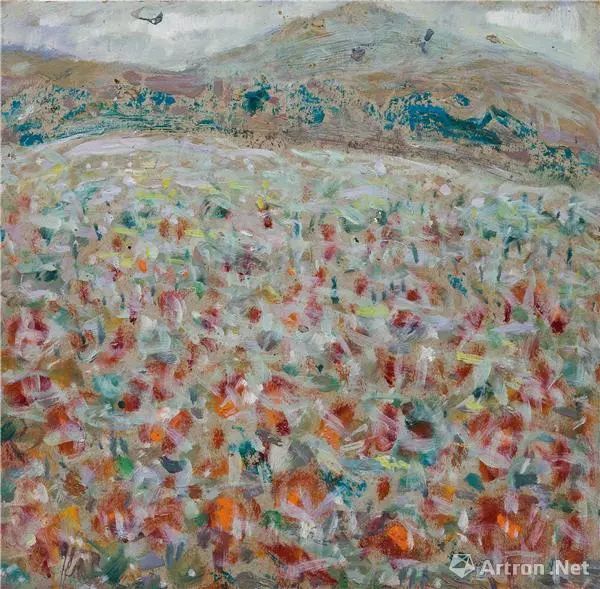 梁器奇 高原花满坡 28cmx28cm 2008年