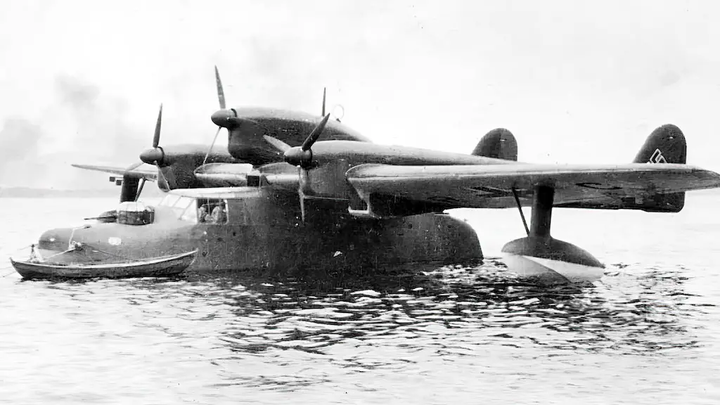 图6.德国Bv 138型远程水上飞机,机长19.85米,机高5.9米,翼展26.9米,最大起飞重量3.73吨,最大时速264千米/时,航程4023公里,乘员6人,机首和尾部炮塔各安装一门20毫米MG 151机炮,后部还有一挺13毫米MG 131机枪,载弹量300公斤