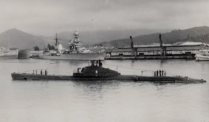 图15.苏联海军黑海舰队的Shch-213号潜艇,背景中可见一艘26型巡洋舰
