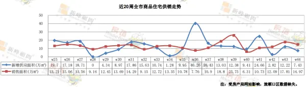 W44周,大连全市销售面积14.97万㎡(旅顺口区数据缺失),环比下降16%,同比下降10%。从销售热点板块来看,体育新城销售引领,开发区滨海、东港周销售表现分列第二、三位。