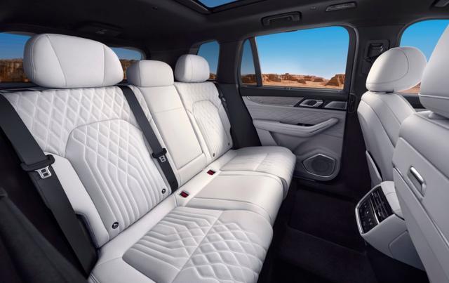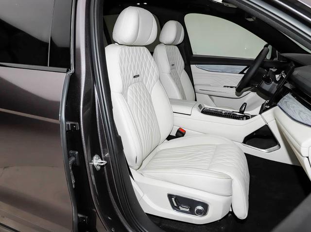 全系采用五座布局,座椅配置相较于老款有所升级,这也是本次改款车型升级的重点。具体来看,副驾座椅增加记忆功能及280mm一体式4向腿托,最大调节角度56度,支持一键开启躺椅模式。后排座椅提供3档加热,新增8点式按摩、座垫/靠背通风,二排右侧提供小桌板(最大承重为18kg)。Ultra版相比Max版增加了前排座椅通风/按摩/记忆、副驾电动腰托、老板键等功能。座椅全都采用Nappa真皮材质,座椅舒适度和空间灵活度都有不同程度的升级。