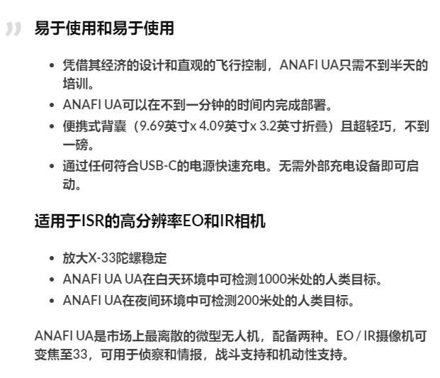 相比于其他无人机,Parrot ANAFI UA这种小巧轻便的微型无人机,价格更低,部分场景下可操作性提高,虽然小巧但功能一样强大,也是未来发展的趋势之一;您认为Parrot ANAFI UA会成为最好的紧急搜救无人机之一吗?