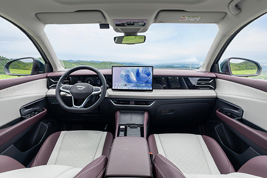 车内配备10.25英寸全液晶仪表+14.6英寸悬浮中控屏的组合,搭载悦行OS智能车机系统,支持语音交互和手机互联、集成高德地图、深度整合DeepSeek与豆包AI应用。