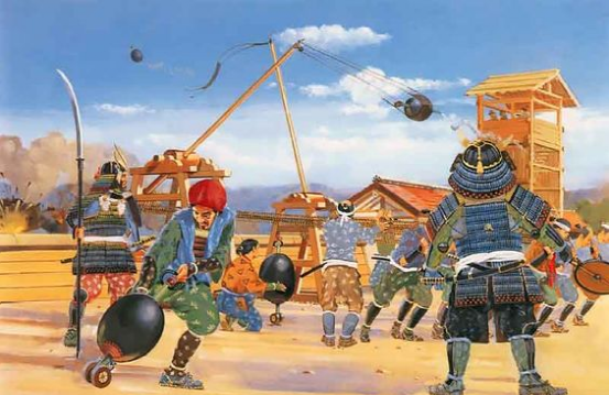虽然有小型可机动的抛石机,但是对于攻城于事无补,大型抛石机在日本多山的地理环境中很不适应