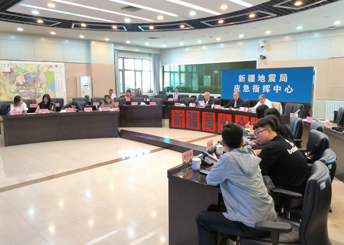 图为采访团在新疆地震局应急指挥中心座谈调研。新华网发