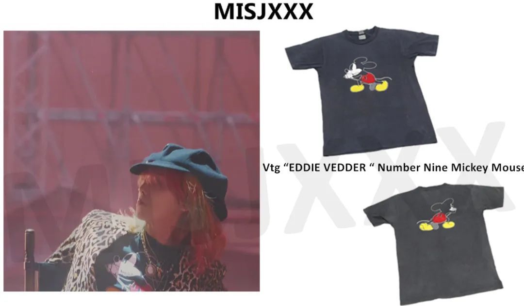 就像权志龙上身的米奇Tee一样,每个不同的米奇都是一个摇滚乐手的经典形象,图上的米奇采用了Pearl Jam主唱Eddie Vedder演出形象为灵感打造。