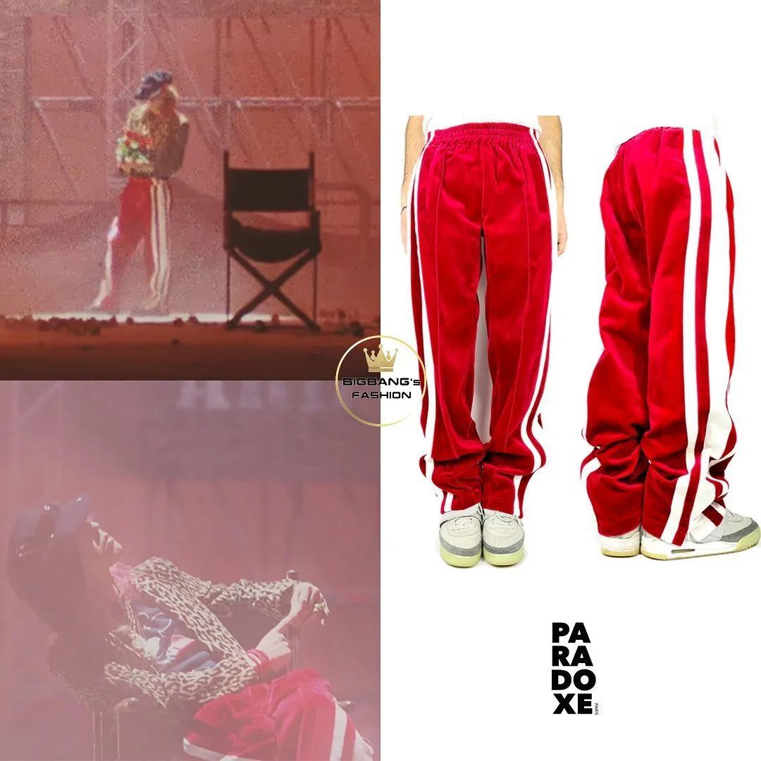 红色丝绒廓形卫裤GD在MV与生活中都穿着