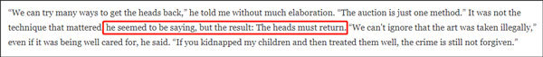 “我们可以通过多个渠道追回圆明园兽首,竞拍只是其中一种方法。”保利文化集团股份有限公司总经理蒋迎春在北京接受文章作者亚历克斯采访时说的这句话,被后者引申为“其言下之意是,方法不重要,关键是结果——文物必须回到中国”。