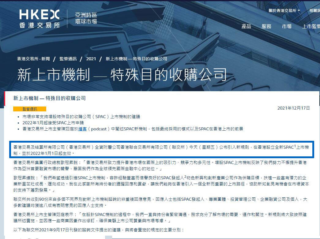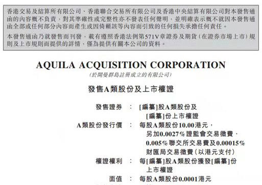 很快,在12月中旬,香港也发布了港交所SPAC的上市规则,该规则于2022年1月1日生效。在生效后短短半个月时间,Aquila Acquisition就向港交所提交上市申请书,可见资本市场参与者的手速有多快!