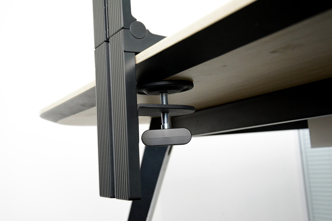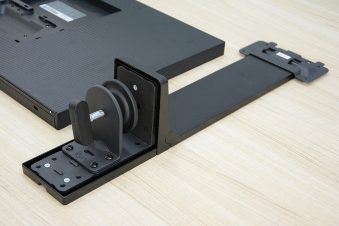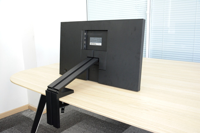 与我们常见的显示器不同,三星Space Monitor在支架上采用的是独立钳夹式支架,与显示器通过4颗螺钉固定形成一个整体,再通过支架上的钳夹,与桌子的一边牢固固定。固定显示器的这一边可以贴墙,也可以不贴墙,其稳固程度无需担心。
