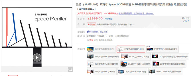 通过上面的介绍,可以看到这款三星Space Monitor显示器在外观上是很有个性的产品,而且更加稳重。参数上,27英寸的WQHD屏幕,分辨率为2560×1440,刷新率高达144Hz,仅有4ms的响应时间,对比度3000:1。也就是说,这款显示器不仅满足日常办公的需求,在游戏体验方面,也同样能够胜任,高清的画面,流畅的运动,绝对能够给玩家带来极速、超爽的体验。
