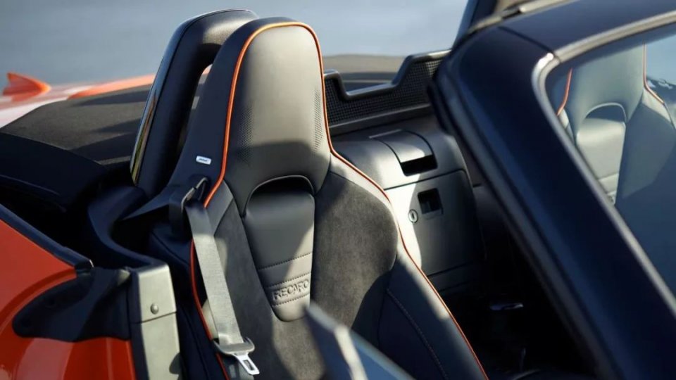 最主要的变化在于新车采用Racing Orange车漆、橙色Brembo制动卡钳、Rays打造的10辐锻造铝合金轮圈。此外新车在后翼子板位置增加专属铭牌,显示它的独一无二,这3000台里每一台的铭牌数字都不一样。