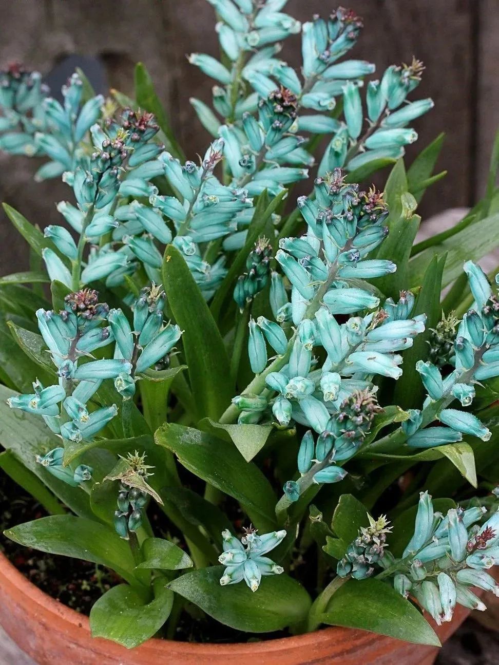 如果你比较喜欢小众的观赏花卉,那绿松石立金花就不要错过了,它的植株矮小,有着直立的茎叶,叶片是绿色的,表面上会带有很多紫褐色的斑点,而它的花序比较低矮,花序上会开出一朵朵如同绿松宝石一般的花朵,没有香味(花蜜多),花期可以维持2~3周,花后会孕育很小的黑色种子。