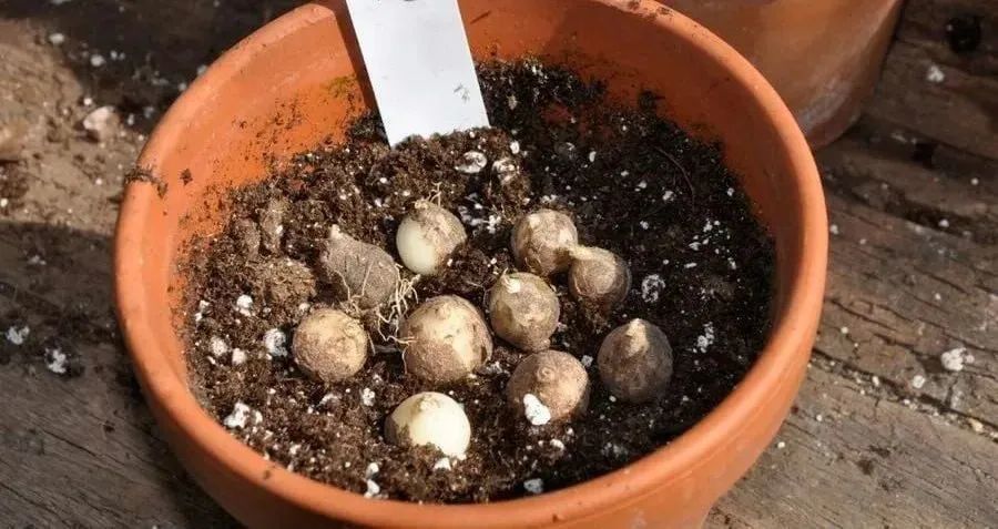 栽种到盆土要保持有良好的排水性、透气性。若买到大点的球根,花盆就选择直径在20~25厘米。如果买的球根特别小,就用12厘米小花盆即可。可以用常见的红陶盆、加仑盆、青山盆或爱丽丝花盆等。