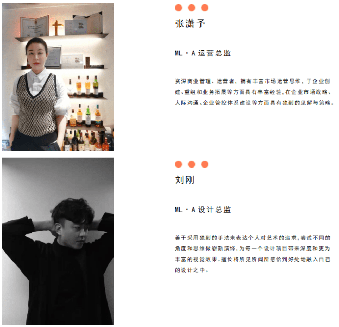 ML·Associate是集硬装、软装、全案设计、施工为一体的室内设计品牌,是一所对生活与设计极具热情的室内设计公司。ML·A拥有一批高素质资深设计团队,以及才华横溢的专业人士以及管理队伍。聚焦于售楼处、样板间、展厅、顶级豪宅及高档酒店等空间领域,坚持原创设计,敢于创新,为客户提供优质的空间设计规划服务,为客户带来绝佳的空间体验以及商业价值。