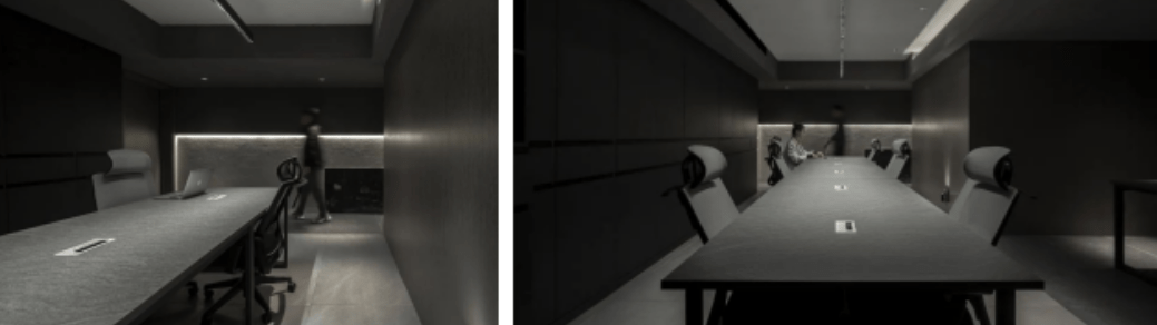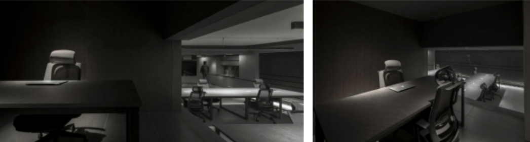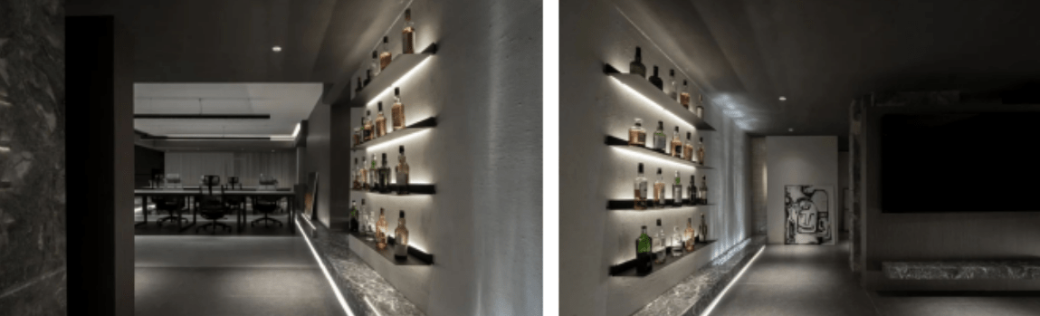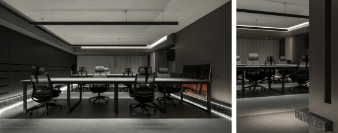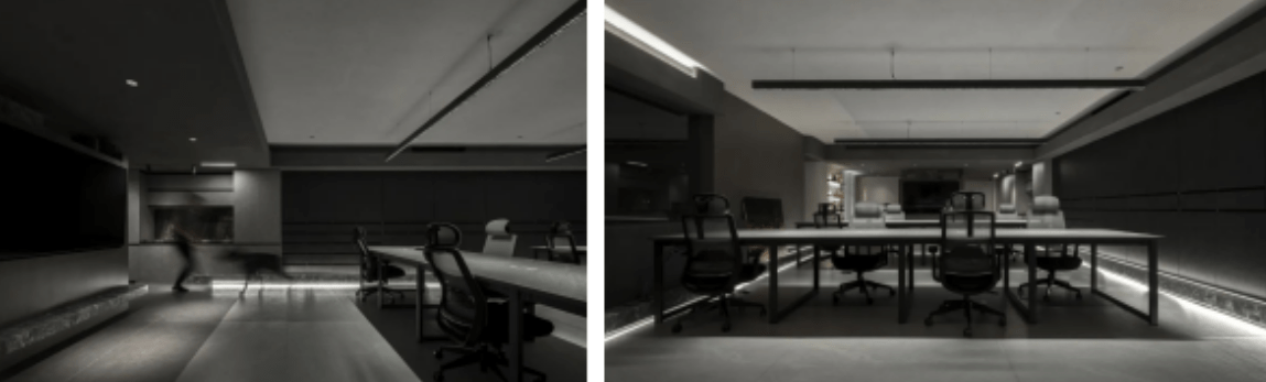 在灯光的渲染下,灯带所形成的线条,折射出丰富的空间层次。独立与开放相互交织,让使用者对自己的空间有绝对的自主权,用以保持独立空间的思考,动线设计又为不同部门创造交叠互通的机会。
