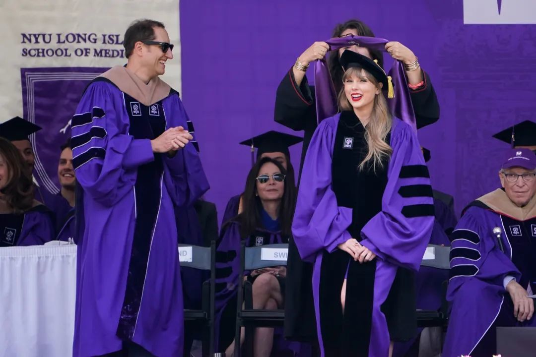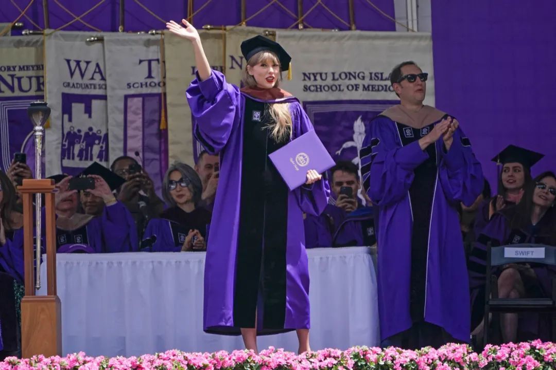 对于Taylor Swift来说,是重要的一天!这是她有史以来第一次做毕业典礼的演讲,也是在新冠疫情后共同为2020年、2021年和2022年的所有毕业生们庆祝这光荣的时刻。同时,她自己也被授予纽约大学的“艺术博士”荣誉学位。