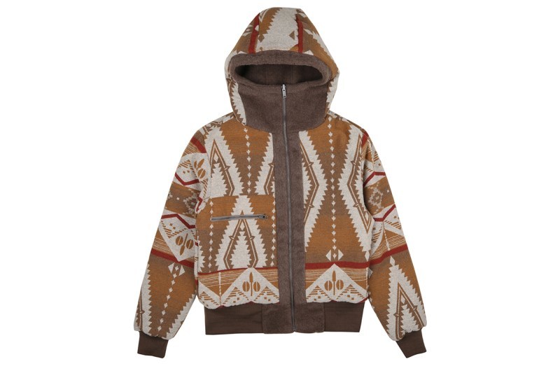 这款棕色的帽衫由羊毛制成,左胸处附有标志性的「太空人」图案。这件帽衫的特别之处在于,当你将衣服翻面,便可将印第安风格的「Navajo 图腾」内衬穿在外面,一衣两穿。不论是自己着用,还是送给好友做圣诞礼物,都是不错的选择。