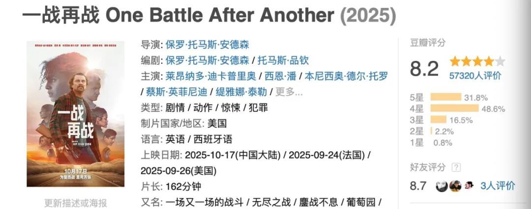 这部电影英文名叫做「One battle after another」,中文名叫《一战再战》。