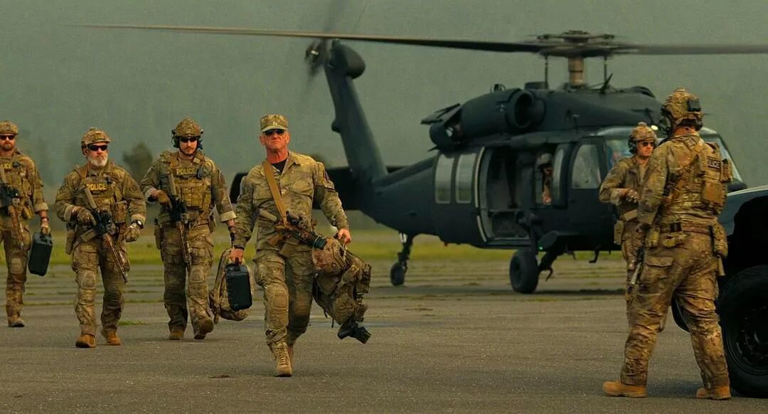 女友用枪指着肖恩潘饰演的军官洛克乔,「边境自由!」她喊到。