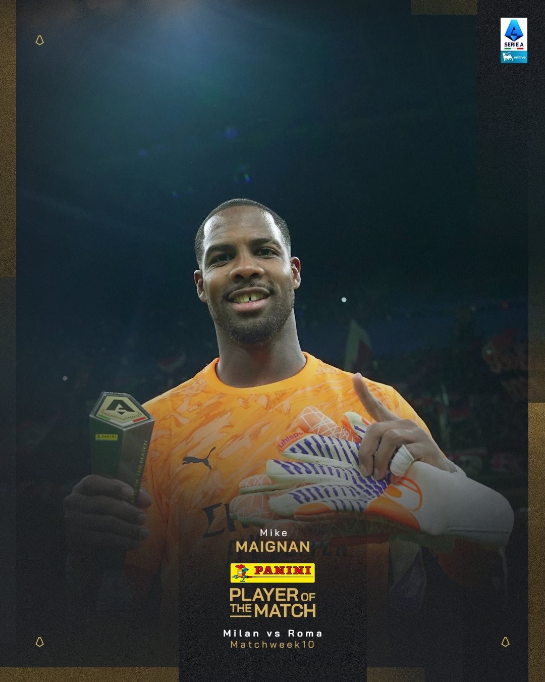 意甲第10轮主场迎战罗马的比赛中,米兰在尾声阶段被判点球,但迈尼昂将迪巴拉主罚的点球拒之门外,从而让米兰避免被扳平比分,并以1-0击败罗马全取三分,这也是他自从2024年10月以来首次为米兰扑出点球。