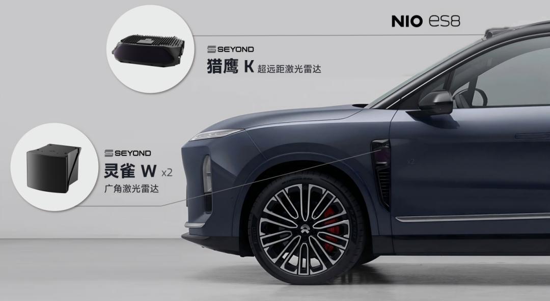 蔚来全新 ES8 配置 3 颗激光雷达,前向最远探测距离 500 米,侧向最远探测距离 150 米;