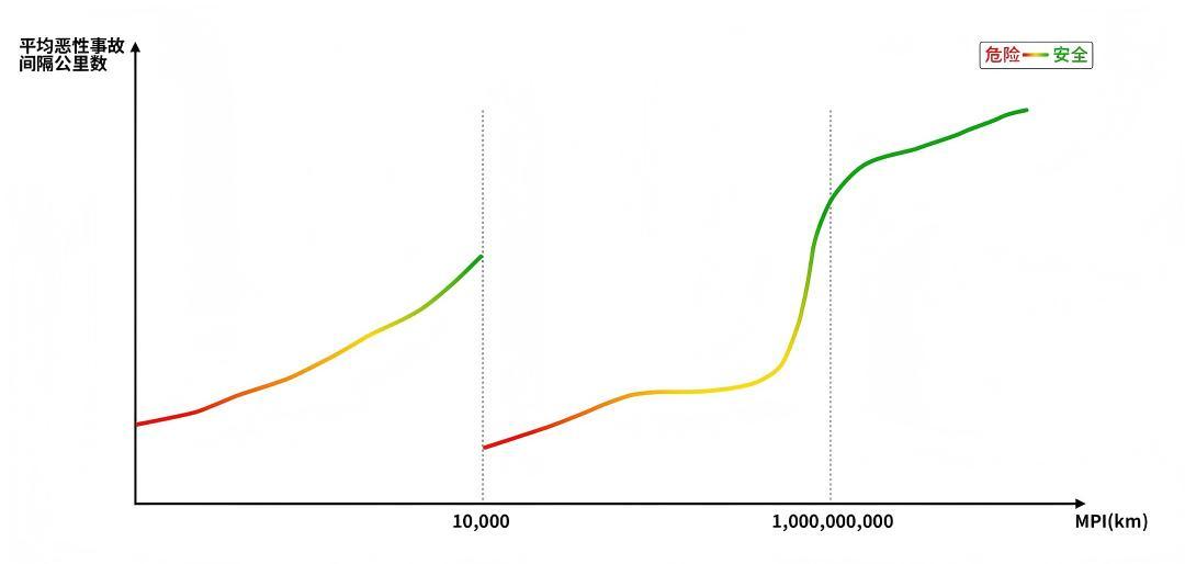 MPI 越低时,如几十公里就得接管一次,驾驶者往往更加警觉,安全冗余发挥效用低;