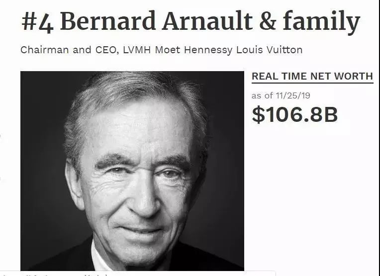 阿尔诺的身价也随着LVMH的壮大水涨船高,在此次收购蒂芙尼以后,阿尔诺的净资产随着LVMH的股价上涨了1%以上。根据《福布斯》跟踪的实时财富排行榜, 阿尔诺目前的身价已经超过1060亿美元。 比尔·盖茨和杰夫·贝佐斯这两位全球首富可能很快就会发现,自己的身价或将屈居人后。