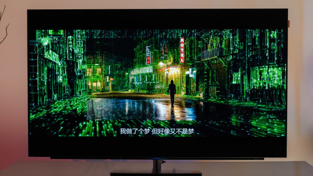 峰值亮度这项拉得很满,像《黑客帝国》里满屏的幽幽绿光、爆炸的火光、强烈的阳光照应在脸上等场景,它可以表现得很好,在“亮得起来”的同时画面对比度也是在的,内容细节没有丢失。