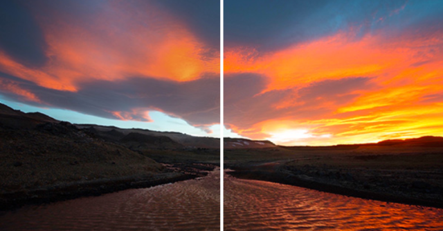在下面这张自然风景图像中,无论是芦苇湖边的艳丽晚霞,还是一隅野草、亭亭荷盖,拥有高色准屏幕的S82都表现得相当到位,让极果君有一种 “云观光”的赶脚~