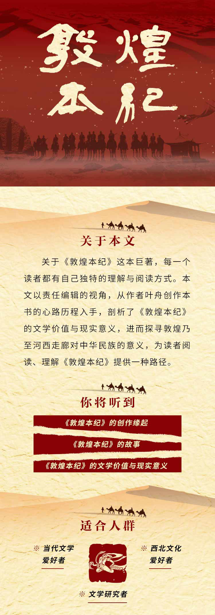 接下来,我们将从三个方面解读本书。第一,《敦煌本纪》的作者叶舟以及创作缘起;第二,《敦煌本纪》的故事;第三,《敦煌本纪》的文学价值和现实意义。