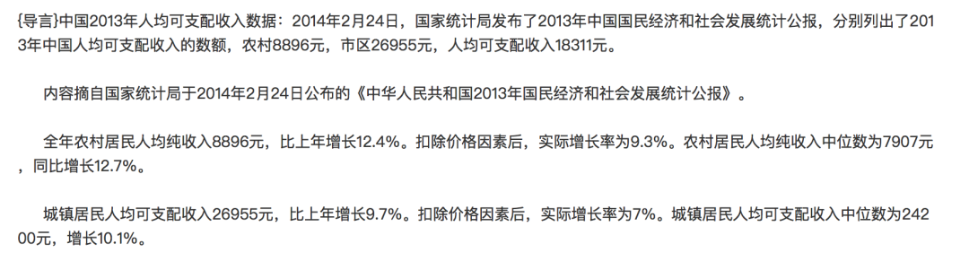 然而,国家统计局公布的2019年,全国可支配收入中位数是 26253元,月均 2188元。比该文章的1300元左右,高出了 59%。