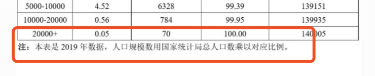 所谓2019年的数据,只是用了2019年总人口14亿的数字。里面的收入数据和收入分布都是2014年收集的2013年的数据!