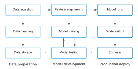 下文将从非常抽象的角度介绍 ML pipeline 中的各个阶段,并讨论数据测试和文档记录如何适应每个阶段。