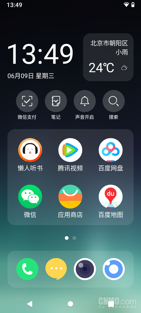 进入桌面,Nokia C20 Plus的操作系统十分简洁,大块的功能图标整齐的排列,常用功能在最上方一目了然。桌面最多支持三屏用来摆放应用软件,首屏能够自定义摆放6个应用,满足常用软件的使用需求;第二屏和第三屏均可摆放 12 个应用或文件夹,更多软件会被自动收入文件夹中,界面最下方是4个常规的系统级应用。