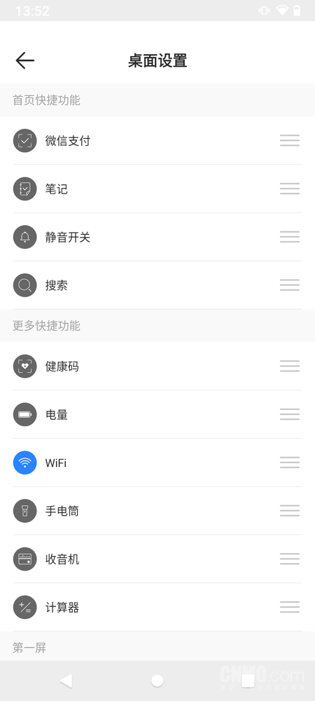 比如你想要的完成支付,只要点击图标一键打开扫一扫,相比于传统的开微信-扫一扫-扫码支付,要便捷很多,十分适合不熟悉智能手机的初学者。而且,Nokia C20 Plus提供了10个快捷功能供用户选择,包括,微信支付、笔记、静音开关、搜索等。只需进入桌面设置就可进行快捷功能选择,打造属于你自己独一无二的手机。