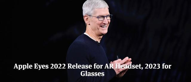 所谓AR技术,即增强现实,能将现实世界与虚拟世界混合在一起,使用户可以与其他人进行交互,同时还可以在地图应用程序中查看文本和路线。苹果原计划在2019年研制首款AR头戴式耳机,定位“游戏、观看视频和虚拟会议”,并将在2020年发布,但最终决定将其推迟到2022年,并在一年后推出首款AR眼镜。